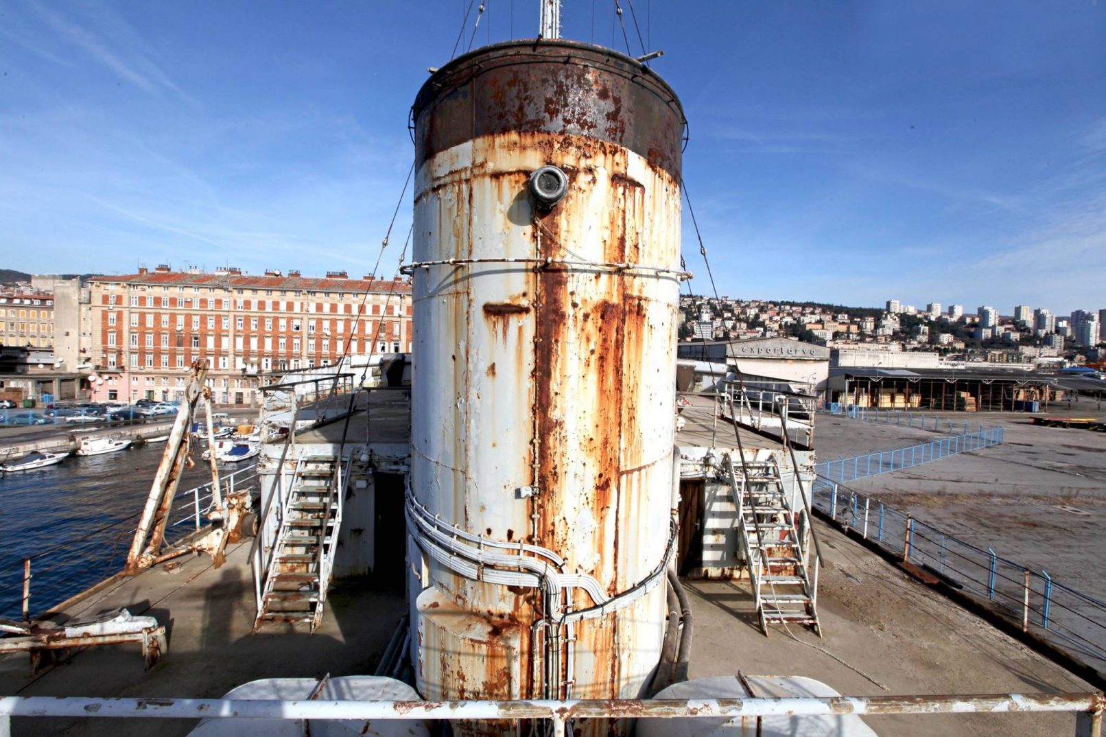Kühlschiff – Hilfskreuzer – Minenschiff – Staatsyacht – Urbaner Garten, so sieht die transitionale Historie der ‚Galeb‘ nach unserem Geschmack aus. Das 150m lange und 20m breite ehemalige Schiff von Jugoslawiens Staatschef Josip Broz Tito liegt wie ein vergangener Traum an der Mole von Kroatiens Hafenstadt Rijeka. Mittlerweile zum nationalen Erbe erklärt möchten wir es ab 2016 zusammen im Rahmen der Bewerbung der Stadt Rijeka zur Kulturhauptstadt 2020 zum Gemeinschaftsgarten umfunktionieren. Kunst und Partizipation sollen inklusive Beschäftigungsumgebungen an Bord holen. ‚Seaside Planters – a transitional maneuver on board of Tito’s Galeb‘ lautet der Titel unseres Proposals.